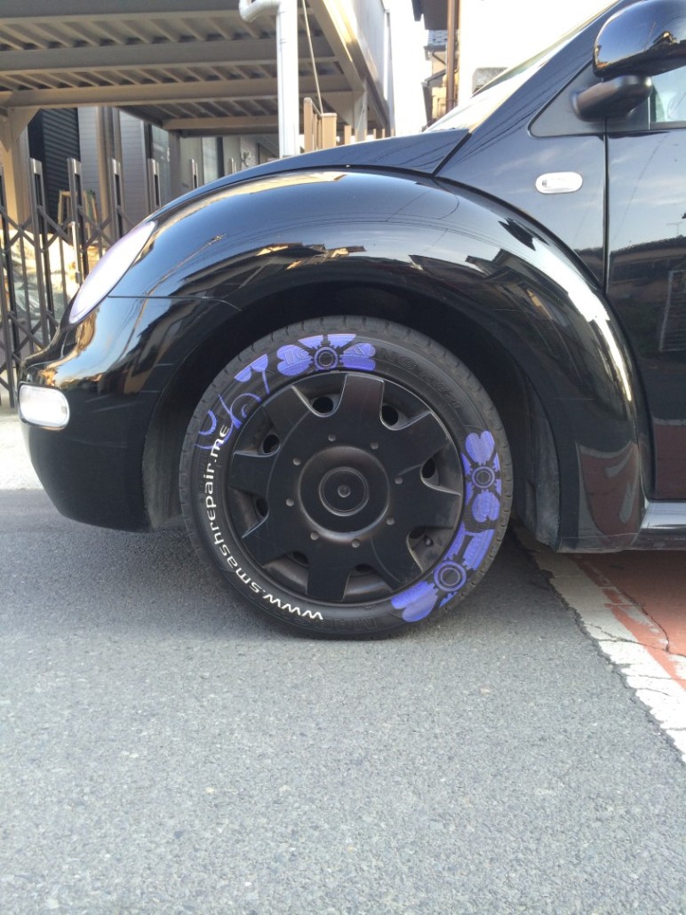 女性のお客様でムラサキの花をプリントしお客様のご厚意でスマッシュリペアのURLをプリントさせて頂きました。
