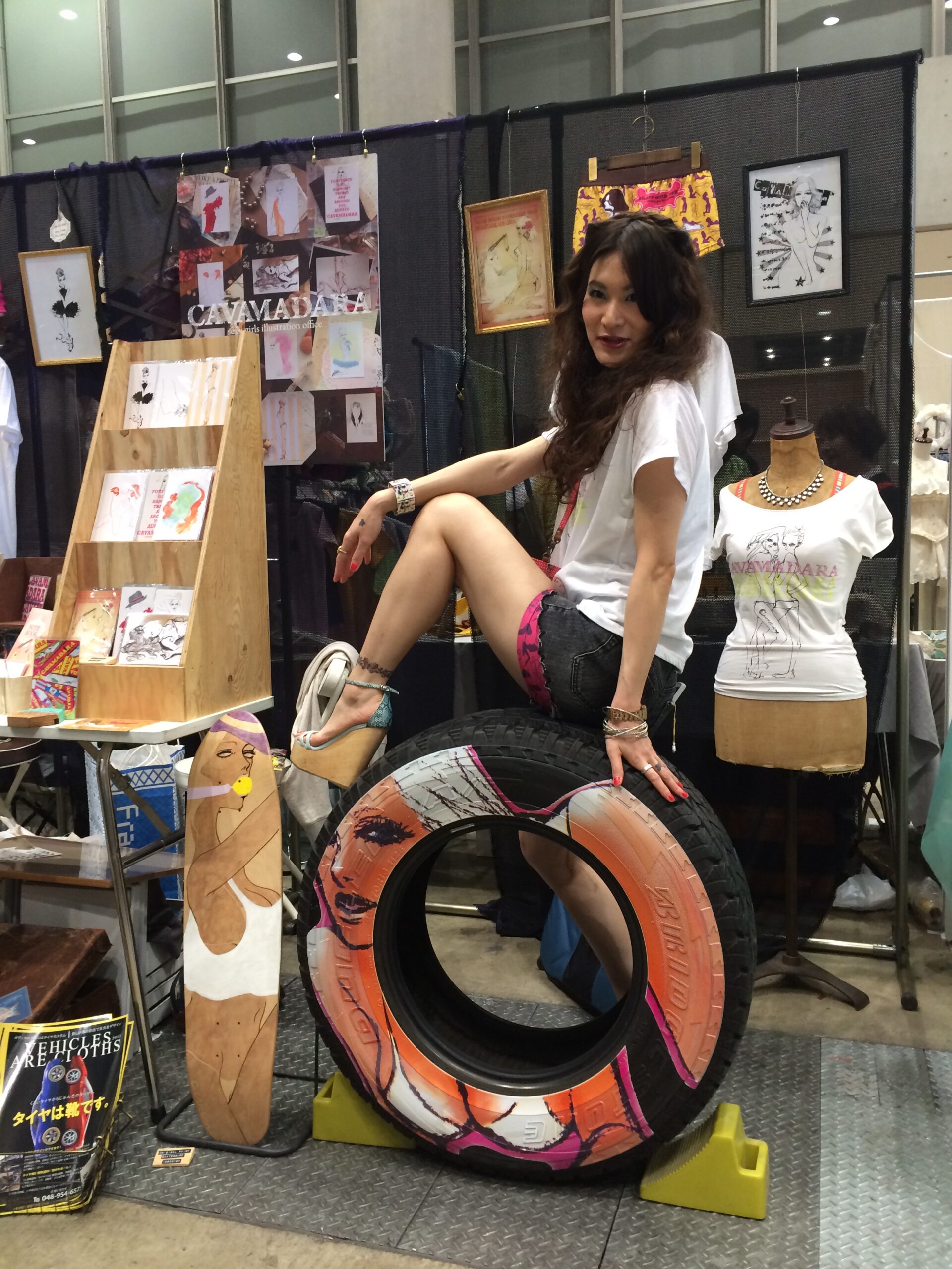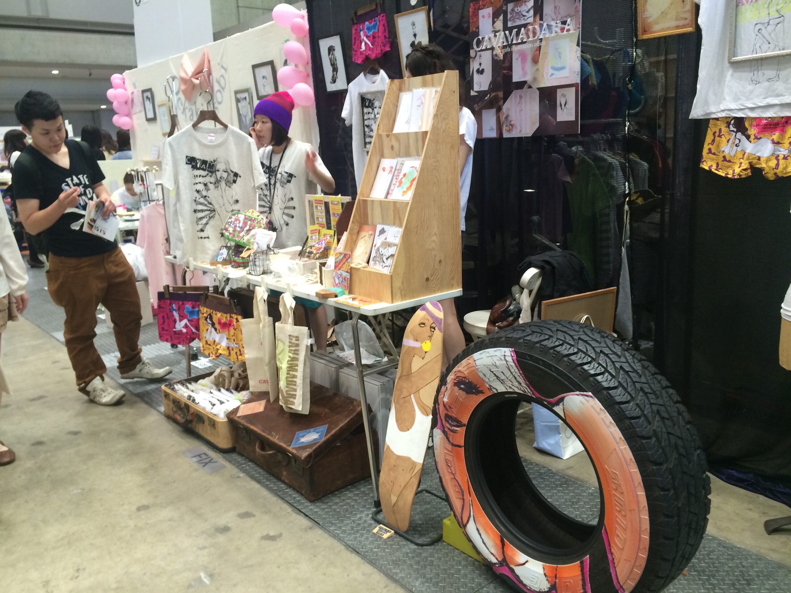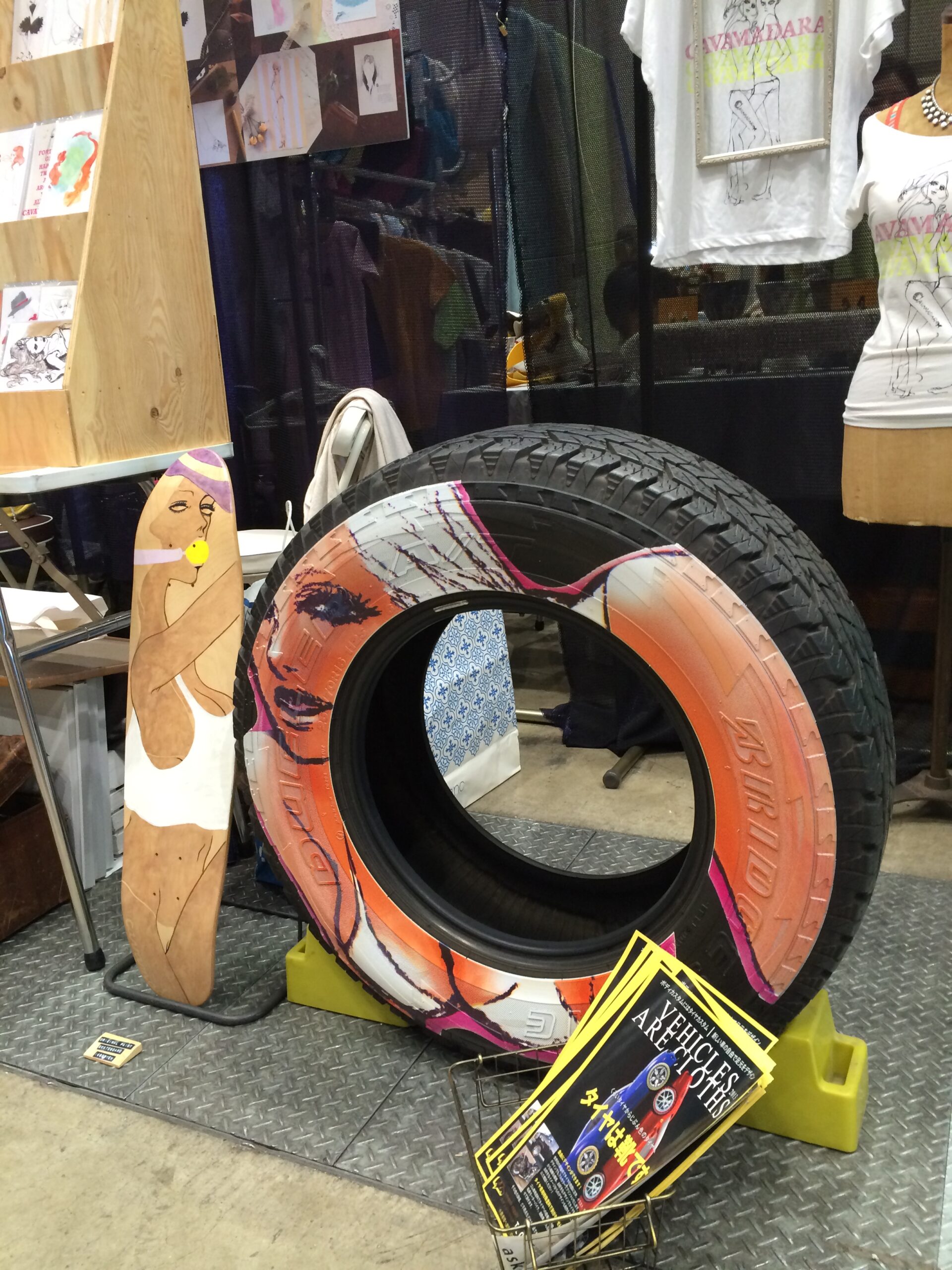 スマッシュリペアです。 先日、縁あってイラスト系をプリントしたタイヤプリントをデザインフェスタに出品させて頂きました。