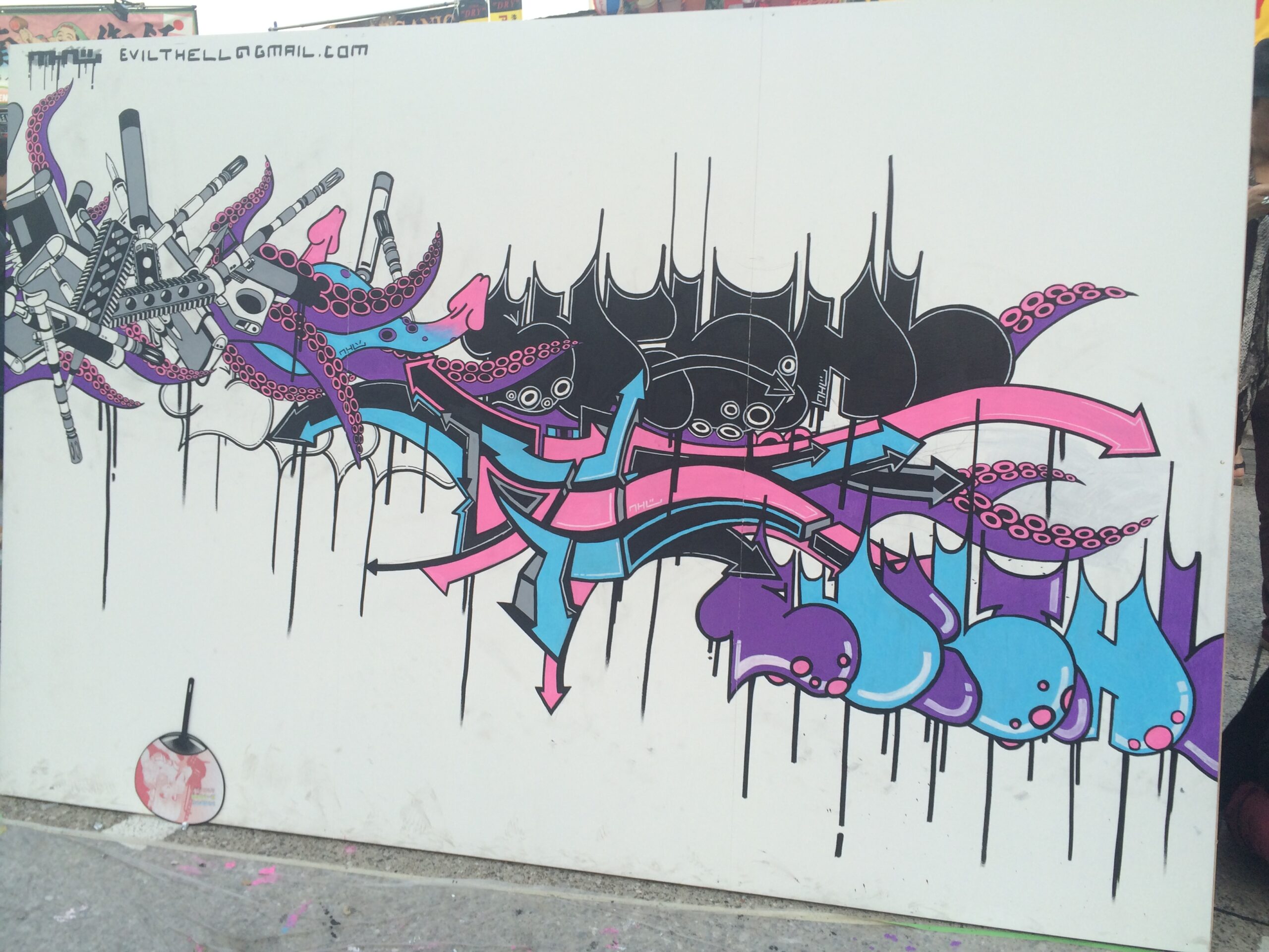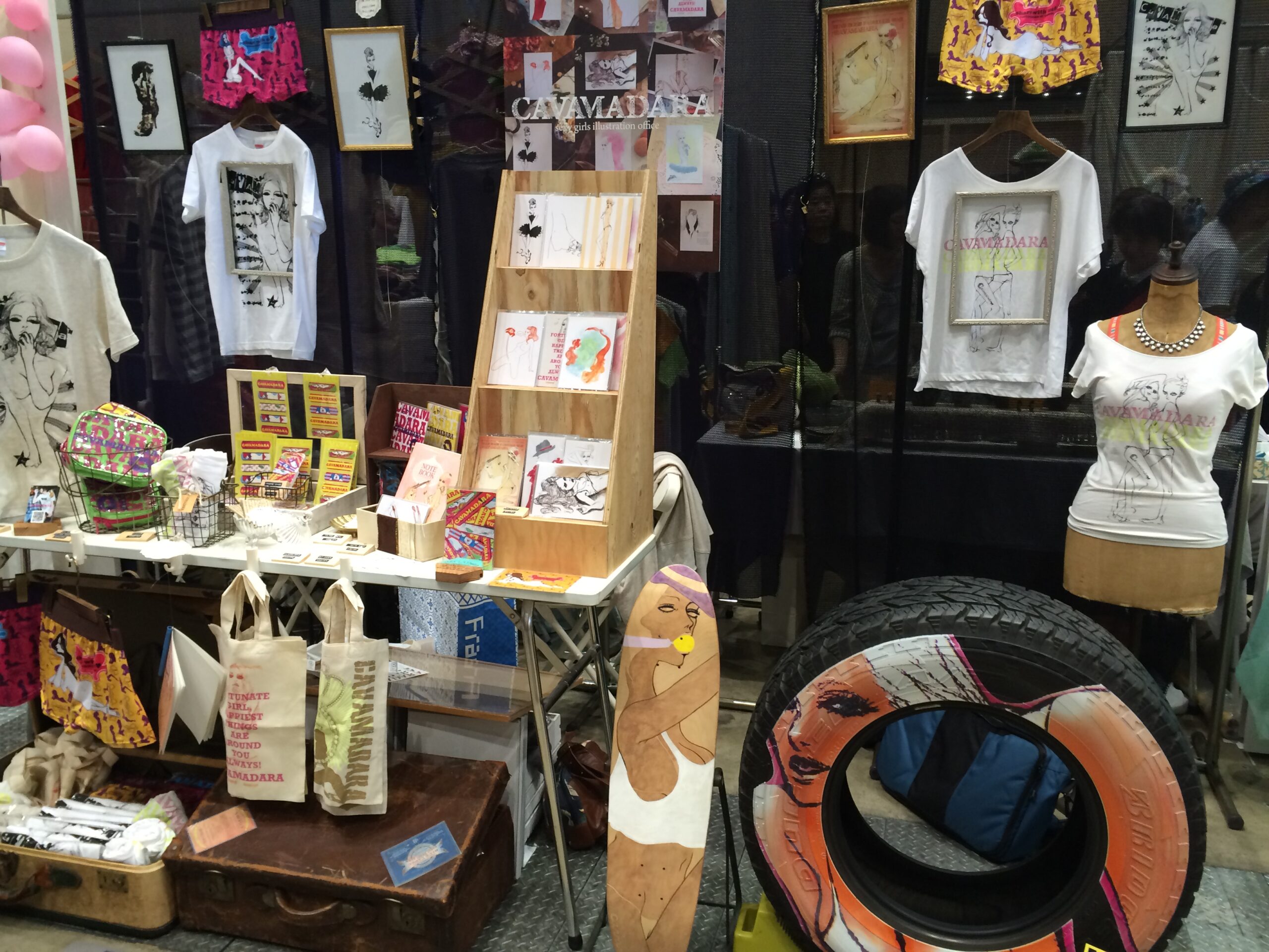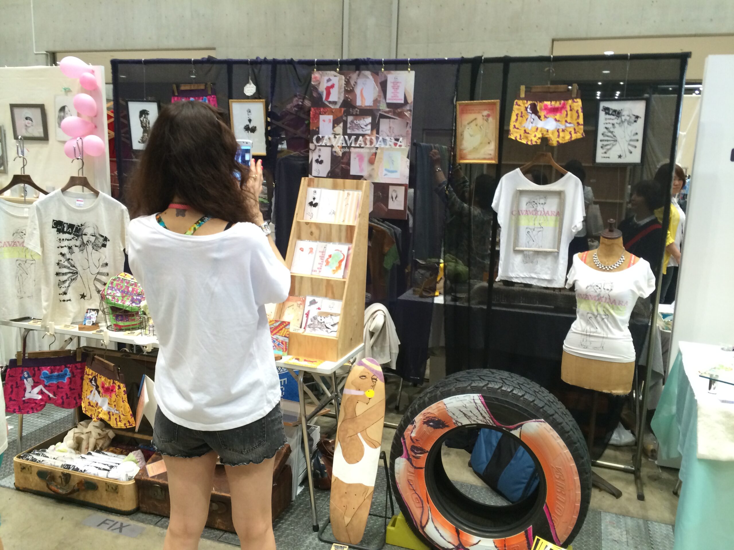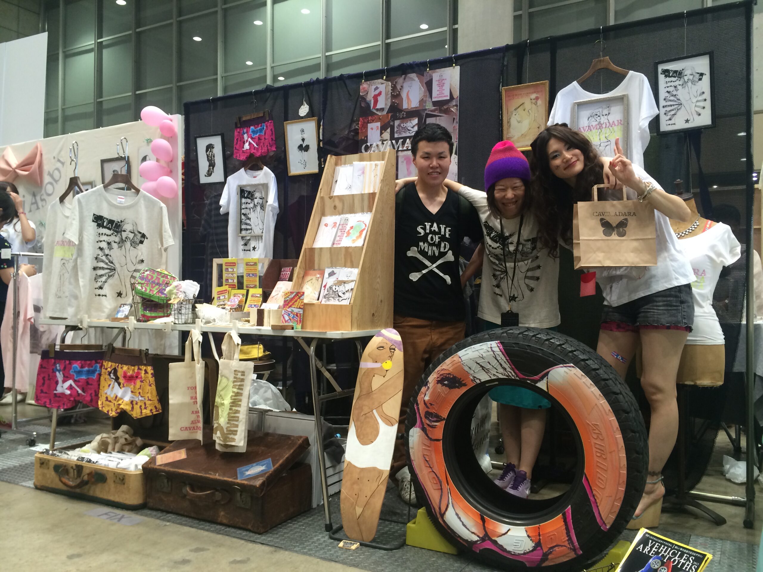 スマッシュリペアです。 先日、縁あってイラスト系をプリントしたタイヤプリントをデザインフェスタに出品させて頂きました。